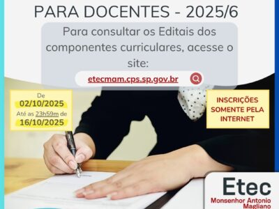 Atenção alunos, professores e funcionários! Participem da Avaliação da nossa Instituição! Clique aqui para seguir para a avaliação: https://websai.cps.sp.gov.br